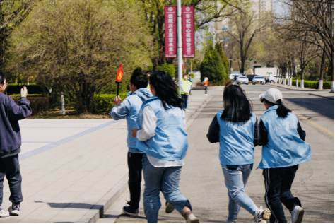 师生齐聚修德楼前,身着象征青春活力的彩虹衣,高举鲜红的火炬,用脚步丈量财大的每一寸土地。