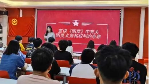 接着,由入团介绍人代表,学院团委副书记(兼)杨静为大家解读了《团章》中关于团员义务和权利的相关内容。通过这一环节,新团员们对团员的身份和责任有了更深入的认识。作为团员,既有享受团组织的权益,也有为团组织的发展和同学们的利益而努力的责任。在未来的学习和工作中,新团员们将更加自觉地遵循《团章》的规定,积极参与团组织的活动,为实现团组织的目标而努力奋斗。