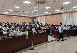 孙晓芳老师作为项目负责人,对实训的宏观经济数据与市场环境进行解读,介绍本期参加实训活动的学生共组成汽车厂商8家、家电厂商16家和钢材厂商8家,活动按虚拟年度循环推进,由学生模拟的厂商通过参与订单竞标、贷款竞标、劳动力竞标、铁精粉竞标等完成生产经营活动,同期可参与组间贷和组间产成品交易等活动,在模拟的宏观经济政策环境下以企业利润为目标做出综合决策。