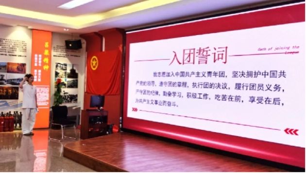在庄严的国歌声中,新老团员们共同追忆祖国壮丽的历史,进一步激发了每个人的爱国情怀。接着,主持人林美婷宣读新团员名单,并对入团仪式的流程和意义进行了详细介绍。她说,大学入团仪式对团组织和团员个人都具有十分重要的意义,对于团组织来说,新团员的加入为团组织补充了新鲜血液,增强了组织的凝聚力和战斗力;对于新团员个人来说,这标志着他们已经成为团组织的一员,开始了更为广阔的团组织生活,对于他们的成长和发展具有深远的影响。